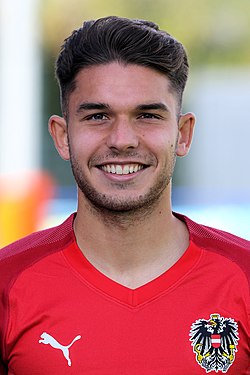 | Teamcamp der österreichischen U21-Fußballnationalmannschaft von 6. bis 13. October 2019 in Bad Erlach – Das Foto zeigt Patrick Schmidt (Barnsley F.C.). | Eigenes Werk | -- Steindy ( Diskussion ) 18:46, 13 October 2019 (UTC) | Datei:Austria national under-21 football team - Teamcamp October 2019 (58).jpg | |