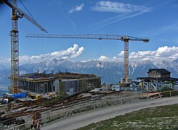 Die Bergstation der Patscherkofelbahn beinhaltete im östlichen Teil einen Hoteltrakt bzw. ein Restaurant. Der Verwaltungsgerichtshof in Wien hat Oktober 2005 den Patscherkofelbahnen in Innsbruck-Igls Grünes Licht für den Abriss des baufälligen Hotels bei der Bergstation gegeben. Der Denkmalschutz wurde aufgehoben. Der zu diesem Zeitpunkt schon verstorbene Patscher Bürgermeister Josef Rinner hatte dagegen Beschwerde eingelegt.[13] Anfang September 2007 haben die Abrissarbeiten begonnen.[14] Noch 2007 begann der Neubau eines Panoramarestaurants bei der Bergstation, das nun 2017 komplett abgerissen wurde.[15]