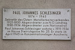 | Paul-Johannes-Schlesinger-Hof, Gedenktafel | Eigenes Werk | Anton-kurt | Datei:Paul-Johannes-Schlesinger-Hof 01.jpg | |