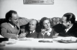 | Der deutsche Filmregisseur Arnold Fanck (1889–1974), das deutsche Fliegerass Ernst Udet (1886–1941), die deutsche Schauspielerin (und spätere Filmregisseurin) Leni Riefenstahl (1903–2002) sowie der deutsch-amerikanische Filmproduzent und Schauspieler Paul Kohner (1902–1988) | Private Archive of Matthias Fanck (grandson of Arnold Fanck), Germany | Autor/-in unbekannt Unknown author | Datei:Fanck udet riefenstahl kohner.png |