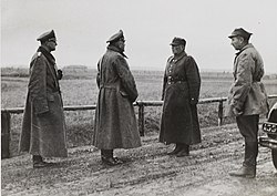 | Generalltn. Generalleutnant Otto, Kommandeur der 13. mot.orisierten Division, vor einem Quartier in Polen. Handschriftlich in Bleistift: r rechts General d.er Panzertruppen Herr / Kdr. d. 13. Pz. Div. Kommandeur der 13. Panzer-Division 1942 / 1944 Korps Kdr. Kommandeur in Italien | https://onlinesammlungen.ghwk.de/seeliger/item/123/ Original file data: File: 75ecabb127692b8ccc36f5f11a4c4c3d2bb3391f.jpgCRC-32: 8b18fb56MD5: 7666da687d066bbecd5648e7a5ee629bSHA-1: ee8ce0d8c7ffde3549986984343d4af72e372d03SHA-256: 226ccf268b95fe466865e4cb016bb2618ed7cb3adcc2909acfb3bfe7ac0991b7SHA-512: db1f3bd9ee7d9758c98f2304e2f9165fc68f32835fe4f319878605f9b7750bd42b9e22996c720904383e429796c35ade13fbf0929fee0ff0d9590290623f30f5SHA3-256: 4d2870f49013aea0595a11577e16bf97e7a476f0db6704c7d8abfe2b9f3651d2SHA3-512: 8a8d4df67f99ed5e0836bf96285cbfc59d14d431f7e682525900f3ae020e7ad7b69fa694f470a9ef8388226baf0fe96deab1c94d74531dfca0d90575dd8d1849 | Kurt Bruno Seeliger ( de ) | Datei:Generalleutnant Paul Otto und der General der Panzertruppen Traugott Herr.jpg |