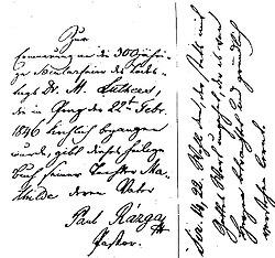 | Widmungstext an seine Tochter | Template:Privatarchiv A. Klipp | unbekannt | Datei:Handschrift Rázga.jpg | |