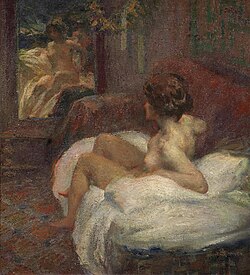 - Akt im Salon, o. J. (Frühwerk), Öl auf Leinwand, 121 × 112 cm.