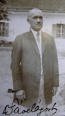 | Ágoston Pável in advance of his house in Laafeld | My throughtaking | Autor/-in unbekannt Unknown author | Datei:Pável Ágoston laafeldi háza előtt.JPG |