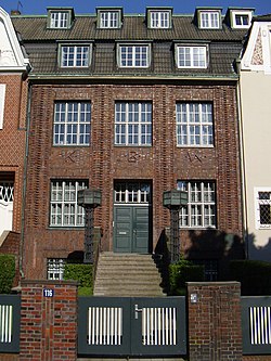 | Ehemalige Kulturwissenschaftliche Bibliothek Warburg, Heilwigstraße 116 Dieses Bild zeigt ein Baudenkmal. Es ist Teil der Denkmalliste von Hamburg, Nr. 666. | Eigenes Werk | Ajepbah | Datei:Kulturwissenschaftliche Bibliothek Warburg.jpg | |
