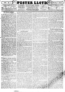 | Pester Lloyd vom 2. Januar 1900 | http://anno.onb.ac.at/cgi-content/anno?aid=pel&datum=19000102&zoom=33 | Pester Lloyd | Datei:Pester Lloyd 2.1.1900.jpg |