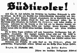 - ↑ Ausgabe vom 22. September 1943 des Bozner Tagblatts, S. 1.