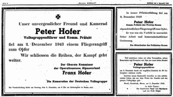 | The Bozner Tagblatt's Peter Hofer Obituary 1943 | Bozner Tagblatt, Dec 4 1943 | Autor/-in unbekannt Unknown author | Datei:Peter Hofer Obituary 1943.png |