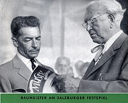 | Herbert von Karajan und Clemens Holzmeiser blicken auf Peter Lafites Zeitschrift | MUSIKZEITarchiv | Fotograf privat, Rechteinhaber: MUSIKZEITarchiv | Datei:Salzburg-festspiele.jpg |