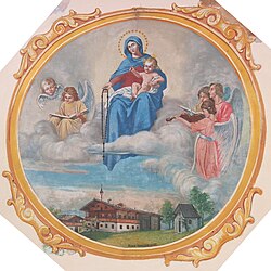 | Diese Datei zeigt das im Tiroler Kunstkataster erwähnte Objekt mit der ID 14689 . ( auf tirisMaps , PDF , weitere Bilder auf Commons , Wikidata ) | Eigenes Werk | Leukentaler | Datei:Deckenbild Vordereggkapelle.jpg | |