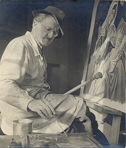 | Der Maler Peter Thaler (1891 - 1978) in seinem Atelier | Eigenes Werk | Leukentaler | Datei:Thaler in Werkstatt.jpg |