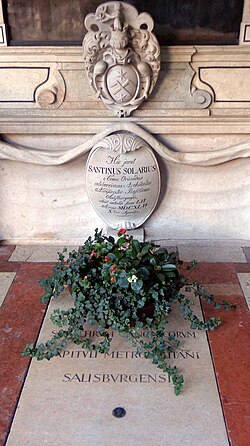 | Crypt 31 (Petersfriedhof Salzburg): the burial place of Santino Solari, the architect of Salzburg Cathedral | Eigenes Werk | PeterCollins | Datei:Crypt 31 (Petersfriedhof Salzburg) grave of Santino Solari.jpg | |