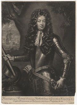 | Thomas Herbert, 8th Earl of Pembroke (c1656-1733), mezzotint by John Smith after William Wissing | one or more third parties have made copyright claims against Wikimedia Commons in relation to the work from which this is sourced or a purely mechanical reproduction thereof . This may be due to recognition of the " sweat of the brow " doctrine, allowing works to be eligible for protection through skill and labour, and not purely by originality as is the case in the United States (where this website is hosted). These claims may or may not be valid in all jurisdictions.As such, use of this image in the jurisdiction of the claimant or other countries may be regarded as copyright infringement . Please see Commons:When to use the PD-Art tag for more information. | John Smith | Datei:8thEarlOfPembroke.jpg | |