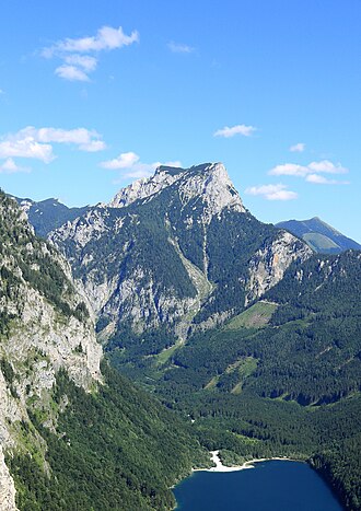 | Nordwestansicht des 1871 Meter hohen Pfaffensteins mit dem Leopoldsteiner See im Vordergrund in der österreichischen Gemeinde Eisenerz im steirischen Bezirk Leoben. | Eigenes Werk | C.Stadler/Bwag | Datei:Eisenerz - Pfaffenstein.JPG | |