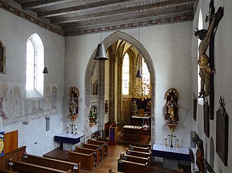 An der südseitigen Langhauswand stand früher ein gotischer Altar zu Ehren der hll. Jodok und Magdalena, den Nikolaus Kaps am 4. Oktober 1502 konsekriert hatte. Der Mittelteil des Altares mit einer Statue des hl. Jodok, eine Krone zertretend, wurde 1915 vom Salzburg Museum angekauft und ist erhalten, die bemalten oder reliefierten Flügel mit den Darstellungen der hl. Magdalena, als Büßerin und als Einsiedlerin, hingegen sind verschollen.[5]