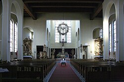 | Innenansicht Richtung Altar der Pfarrkirche Hl. Geist in der oberösterreichischen Stadt Attnang-Puchheim . | Eigenes Werk | C.Stadler/Bwag | Datei:Attnang Pfarrkirche Innen RA.JPG | |