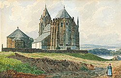 In den Jahren 1585 und 1683 beschädigten Brände die Kirche[1] und beim Brand am 15. August 1774 wurden das Maßwerk und die Strebepfeiler großteils zerstört.[8] Um 1862 war der Kirchenbau in einem ruinösen Zustand und in der Folge fand eine tiefgreifende Renovierung statt, die Architekt Richard Jordan von 1897 bis 1900 oder 1906 leitete[9] und im Jahr 1911 abgeschlossen wurde.[1]