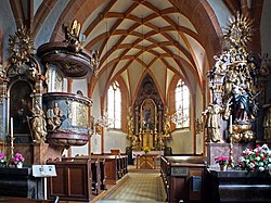 | Dieses Bild zeigt das in Österreich unter der Nummer 56513 denkmalgeschützte Objekt. ( Commons , de , Wikidata ) | Eigenes Werk | Kwerdenker | Datei:Kath. Pfarrkirche hl. Margaretha Bad Mitterndorf - Innenansicht 2.JPG | |