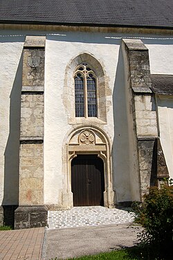 | Detail der Südfassade der Pfarrkirche St. Lambert in Bromberg, Niederösterreich Dieses Bild zeigt das in Österreich unter der Nummer 26570 denkmalgeschützte Objekt. ( Commons , de , Wikidata ) | Eigenes Werk | Wolfgang Glock | Datei:Bromberg Pfarrkirche hl. Lambert Detail.JPG | |