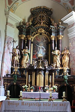 | Pfarrkirche Hl. Margareta: Hauptaltar; Ort | Eigenes Werk | JJ55 | Datei:Pfarrkirche Dellach im Drautal - Hauptaltar.JPG |