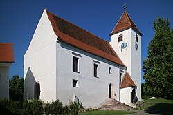 Die Kirche wurde im Stil der Gotik erbaut. Der gotische Kirchturm steht im südlichen Teil des Chores und hat ein Zeltdach. Teile des Turmes wurden im Stil des Barocks gestaltet. Sowohl die Kirche als auch der Pfarrhof waren wahrscheinlich befestigt und wiesen vermutlich Wehranlagen auf, von denen aber keine erhalten geblieben sind. Eine Mauer umgibt die gesamte Kirche und den Kirchhof in dessen südlichen Teil sich ein, heute nicht mehr genutzter, Friedhof befindet.[1]