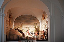 In der Vorhalle befinden sich rechts vom Eingang eine große Ölberggruppe, unter ihr eine Grotte, die als Grab der Hl. Rosalia gestaltet ist.