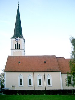Die Kirche war ursprünglich eine zum Schloss Gjaidhof gehörende Kapelle. Sie wird erstmals 1219 urkundlich erwähnt. Im Jahr 1240 wurde sie zu einer eigenständigen Pfarre erhoben. 1660 ließ Leopold I. einen Hochaltar errichten. In der Mitte des 18. Jahrhunderts wurde die so genannte Wieskapelle an den Chor angebaut. Im Jahr 1760 wurde der Kirche von der Kaiserin Maria Theresia der heutige Hochaltar geschenkt. Sie ließ auch den Innenraum durch Balthasar Ferdinand Moll im Stil des Rokokos umgestalten. Die Innenseite der Kirche wurde 1973 und die Außenseite 1979 renoviert. Weitere Renovierungen erfolgten 2004 und 2006.[1][2]