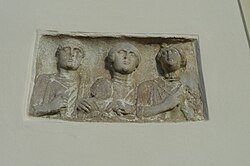 | Eine Spolie (römischer Grabstein), eingemauert in die Kirche von Dobl (Steiermark) | Eigenes Werk | Hiltibold | Datei:Spolie-Dobl-Wiki.jpg |