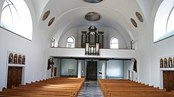 | Pfarrkirche zum hl. Sebastian im Bezirk Oberdorf in Dornbirn , Vorarlberg , Österreich . Blick zur Empre und zur Orgel | Eigenes Werk | Asurnipal | Datei:Dornbirn-Kirche-Oberdorf-Interior-01.JPG | |