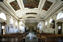 Im Inneren befindet sich an der Decke ein Fresko Anbetung der Könige und Hirten, mit Vertretern des Alten und Neuen Testamentes aus 1849 vom Maler Johann Kaspar Rick.[5] Weiters Fresken stammen von Franz Plattner aus den Jahren 1876 bis 1877.
