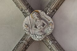 | Im Gewölbe der Wallseer Kapelle in der Stadtpfarrkirche hl. Maria in Enns befinden sich reich skulptierte Schlusssteine. Dieser befindet sich direkt über dem Altar der Kapelle. | Eigenes Werk | Isiwal | Datei:Enns Kirchenplatz Stadtpfarrkirche Wallseer Kapelle Schlussstein über Altar.jpg | |