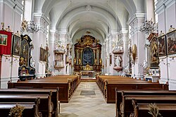 | Innenraum der katholischen Pfarrkirche von Ernstbrunn, Niederösterreich, Österreich | Eigenes Werk | Robert Heilinger | Datei:Kirche 19055 Innen in A-2115 Ernstbrunn.jpg |