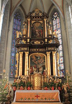 | Pfarrkirche in Friesach : Hochaltar | Eigenes Werk | Neithan90 | Datei:Friesach - Pfarrkirche - Hochaltar.jpg | |