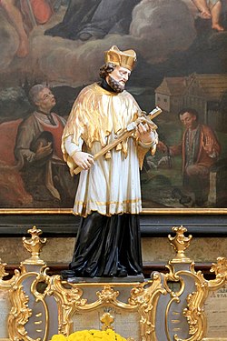 | Nepomukstatue als zentrale Figur des rechten Seitenaltars der Pfarrkirche in der niederösterreichischen Marktgemeinde Gaming . | Eigenes Werk | C.Stadler/Bwag | Datei:Gaming - Kirche, Nepomukstatue.JPG | |
