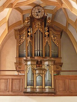| Pfarrkirche hl. Philipp uns Jakob, Gaming, Niederösterreich - „Mozart-Orgel“ (Bartholomäus Heintzler, 1735), (1789 aus dem ehem. Franziskanerkloster Ybbs übertragen) Dieses Bild zeigt das in Österreich unter der Nummer 17402 denkmalgeschützte Objekt. ( Commons , de , Wikidata ) | Eigenes Werk | BSonne | Datei:Gaming Pfarrkirche16.jpg |
