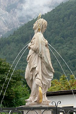 | Großgmain (Salzburg). Brunnen mit doppelgestaltiger Jungfrau Maria, gekleidet als Göttin Diana, von Johann Schwaiger (1693). | Eigenes Werk | Wolfgang Sauber | Datei:Großgmain - Marienbrunnen.jpg | |