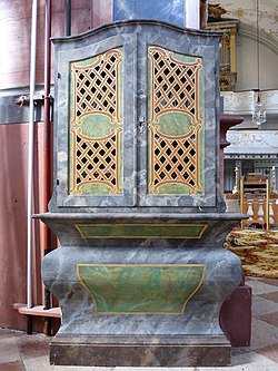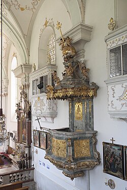 Der Predigtstuhl wurde 1737 von Johann Georg Langmayr geschaffen und ist mit einem Kanzelkreuz an einem Kanzelarm ausgestattet.