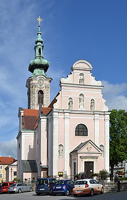 Die römisch-katholische Pfarrkirche Hainburg an der Donau steht in der Mitte des Hauptplatzes der Stadtgemeinde Hainburg an der Donau im Bezirk Bruck an der Leitha in Niederösterreich. Die auf die Heiligen Philippus und Jakobus geweihte Pfarrkirche gehört zum Dekanat Hainburg im Vikariat Unter dem Wienerwald der Erzdiözese Wien.[1] Die Kirche steht unter Denkmalschutz.