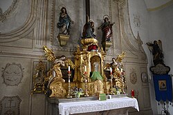Weiters eine Statue der Madonna mit Kind (Kopie einer gotischen Skulptur) zwischen zwei adorierenden Engeln (19. Jahrhundert) und eine Statue des Gegeißelten Heilands an der Südwand des Kirchenschiffes (18. Jahrhundert).