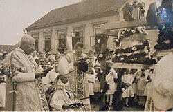 | Glockenweihe mit Propst Leopold Hager vom Stift s. Florian | Eigenes Werk | Vitus1116 | Datei:Glockenweihe 1949.jpg | |