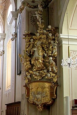 | Die barocke Blindkanzel mit einem Johannes-Nepomuk-Relief in der katholischen Pfarrkirche hl. Stephan von der niederösterreichischen Marktgemeinde Kirchberg am Wagram . | Eigenes Werk | C.Stadler/Bwag | Datei:Kirchberg aW - Pfarrkirche, Blindkanzel.JPG | |