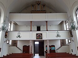 | Pfarrkirche Leopoldskron-Moos, Innenraum mit Blick zur Empore | Eigenes Werk | Ricardalovesmonuments | Datei:Pfarrkirche Leopoldskron-Moos Innenraum 2.jpg | |