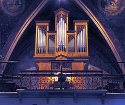 Die Orgel der Pfarrkirche steht auf einer in das erste Joch des Hauptschiffes hineingebauten neugotischen Empore aus dem 19. Jahrhundert, die über eine Treppe im Seitenschiff aus betreten werden kann. Die erste beurkundete Orgel in Terlan wurde 1697 von Kaspar Trampler errichtet.[3] 1857 wurde diese durch ein neueres Instrument von Josef Sies ersetzt. Die heutige Orgel stammt aus dem Jahr 1981 und wurde vom Orgelbaumeister Johann Pirchner aus Steinach am Brenner erbaut. Sie besitzt 18 Register auf zwei Manualen und Pedal.