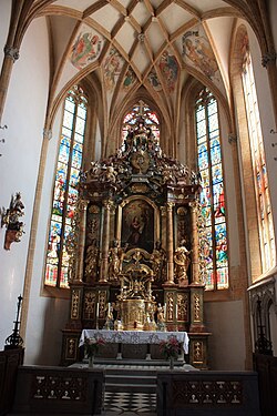 | Stadtpfarrkirche Maria Magdalena: Haupt-Altar Straße :Kirchengasse Gemeinde : Völkermarkt | Eigenes Werk | JJ55 | Datei:Voelkermarkt - Stadtpfarrkirche Maria Magdalena- Hauptaltar.JPG | |