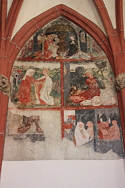 | Stadtpfarrkirche Maria Magdalena: Marienleben Straße :Kirchengasse Gemeinde : Völkermarkt | Eigenes Werk | JJ55 | Datei:Voelkermarkt - Stadtpfarrkirche Maria Magdalena - Fresko - Aus dem Marienleben.JPG | |