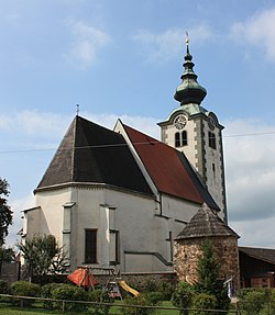 Die erste urkundliche Erwähnung fand die Kirche 1314, 1480 wird sie als Pfarre genannt. Im 15. Jahrhundert wurde die Kirche zur Wehrkirche ausgebaut und 1480 von den Türken belagert. Die Mauern der spätgotischen Wehranlage wurden im 19. Jahrhundert erniedrigt. Bis heute haben sich Mauerreste im Süden und im Nordosten sowie in der Nordostecke ein Rundturm mit einem Kegeldach und einem Portal in der Höhe des ehemaligen Wehrganges erhalten.