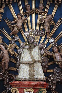 Der linke Seitenaltar wurde 1766 geschaffen und 1774 gefasst. Er trägt eine Anna selbdritt vom Anfang des 16. Jahrhunderts zwischen den barocken Statuen der Heiligen Katharina und Margareta sowie zwei Engel aus dem späten 15. Jahrhundert.
