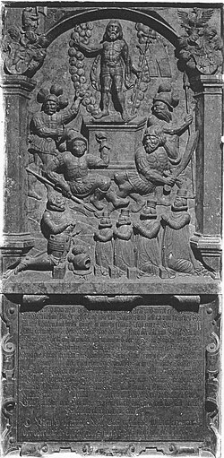 | Mattighofen, Propstei- und Pfarrkirche Mariä Himmelfahrt, Grabdenkmal des Matthias II. von Hackledt (+ 1616) und seiner Familie. Eine wissenschaftliche Bearbeitung des Denkmals liegt vor in SEDDON Christopher R., Die inschriftlichen Denkmäler der Herren und Freiherren von Hackledt. Grablegen, Memoria und Repräsentation eines Innviertler Landadelsgeschlechtes, Wien (Dipl. Arb.) 2002, S. 125-128. | Eigenes Werk | PicturePrince | Datei:Matthias II. von Hackledt.jpg | |