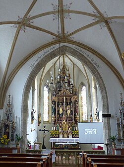 | Moosbach ( Oberösterreich ). Pfarrkirche hl. Petrus ( 16.Jhdt. ) - Innenraum. | Eigenes Werk | Wolfgang Sauber | Datei:Moosbach Pfarrkirche - Innenraum 1.jpg | |