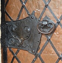 | Moosbach ( Oberösterreich ). Pfarrkirche hl. Petrus ( 16.Jhdt. ) - Gotisches Schloss an der Sakristeitür. | Eigenes Werk | Wolfgang Sauber | Datei:Moosbach Pfarrkirche - Sakristeitür 2 Schloss.jpg |